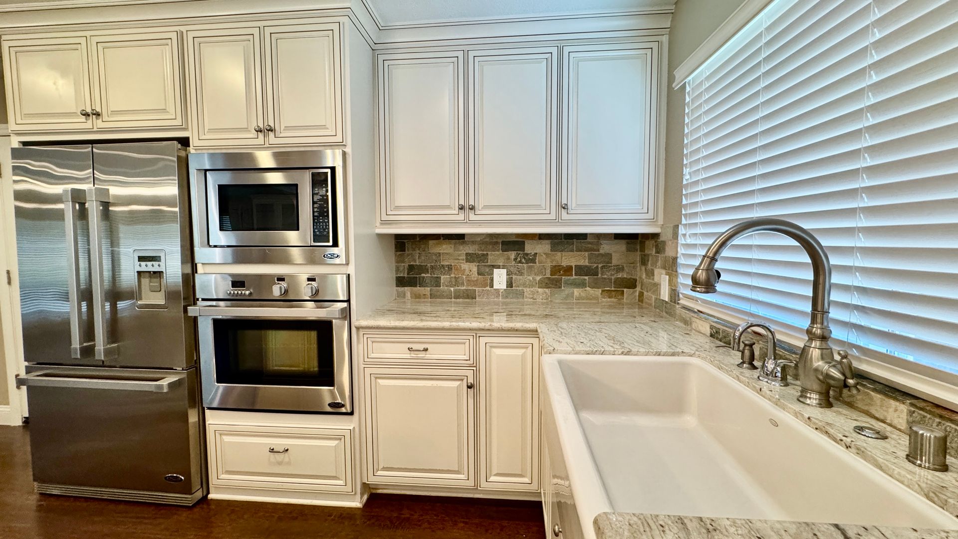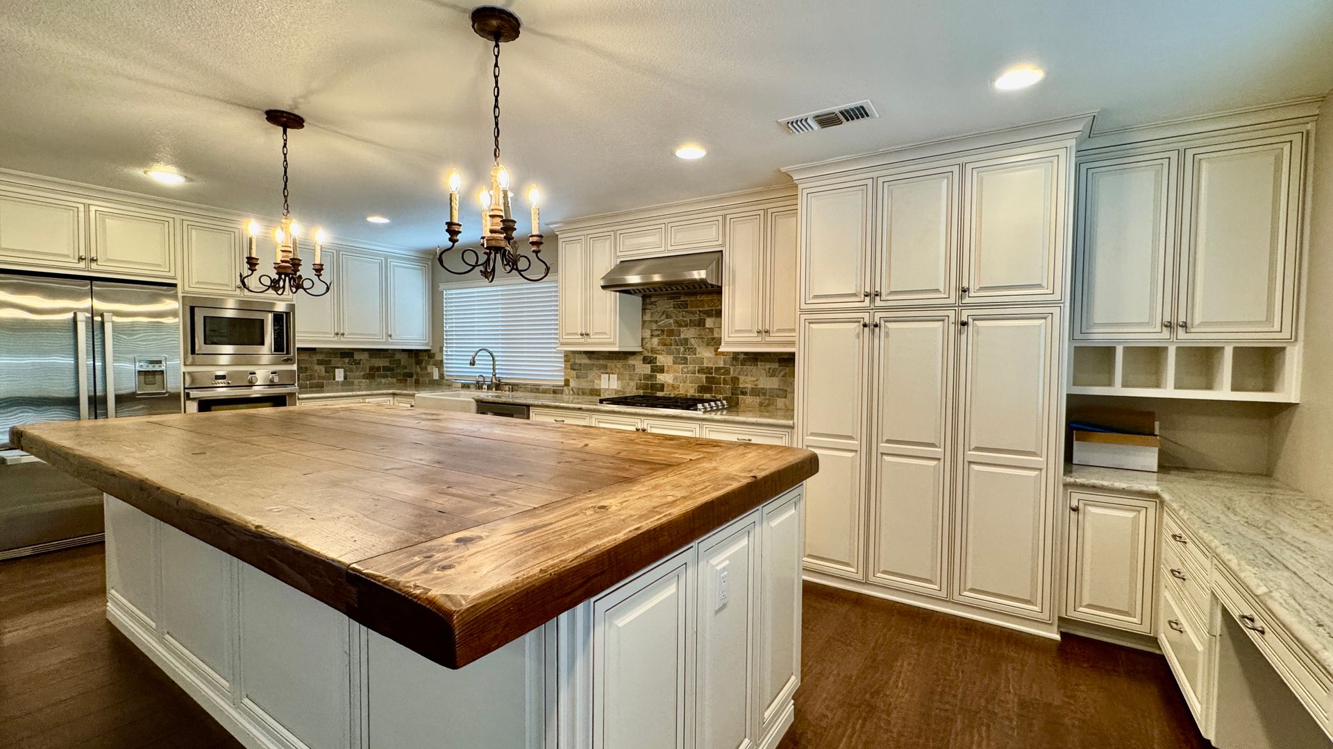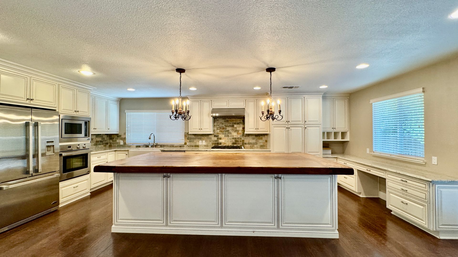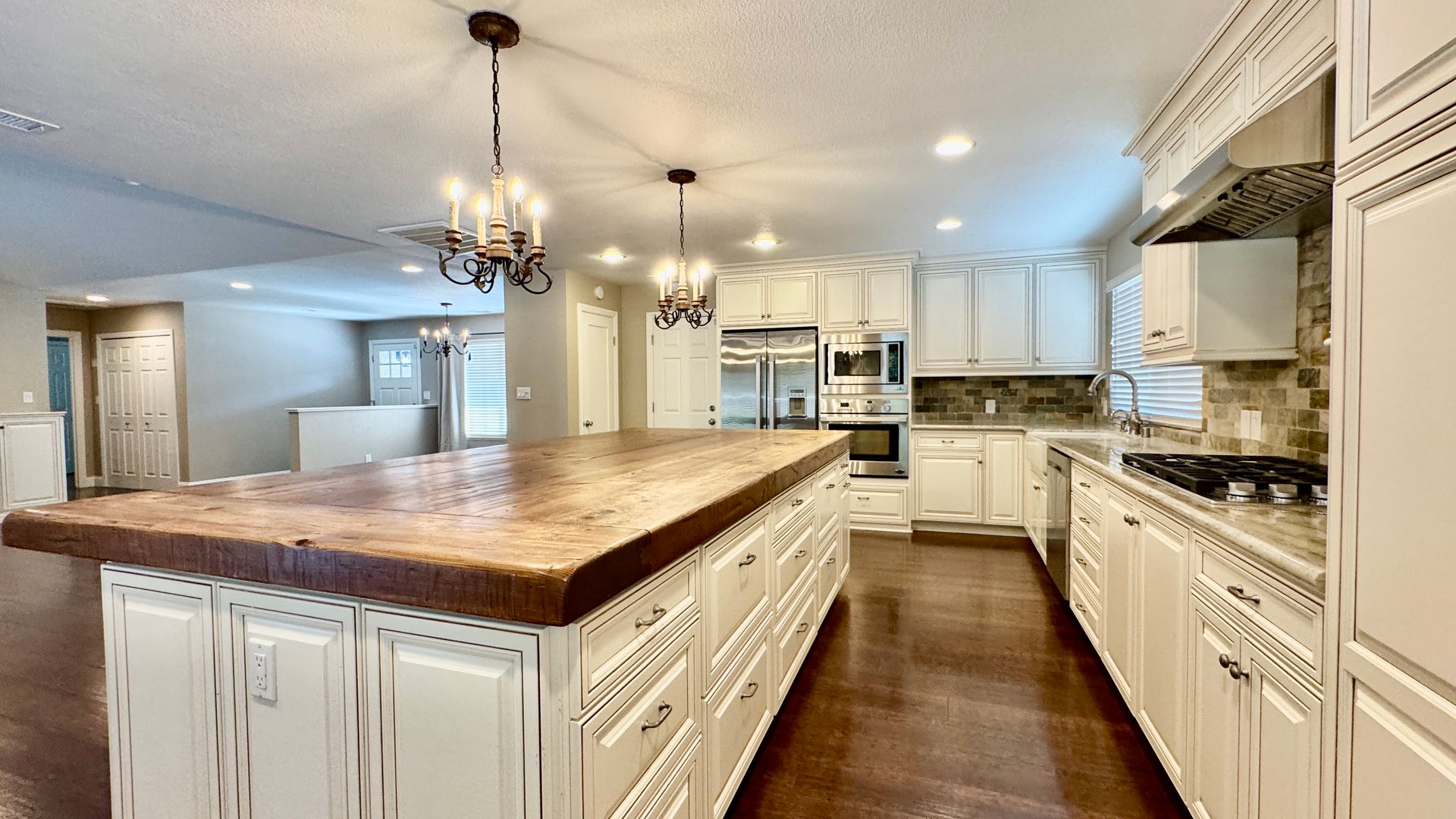 • Kitchen: High-end “chef’s kitchen” with DCS and Samsung appliances, large island, farmhouse sink—ideal for entertainment