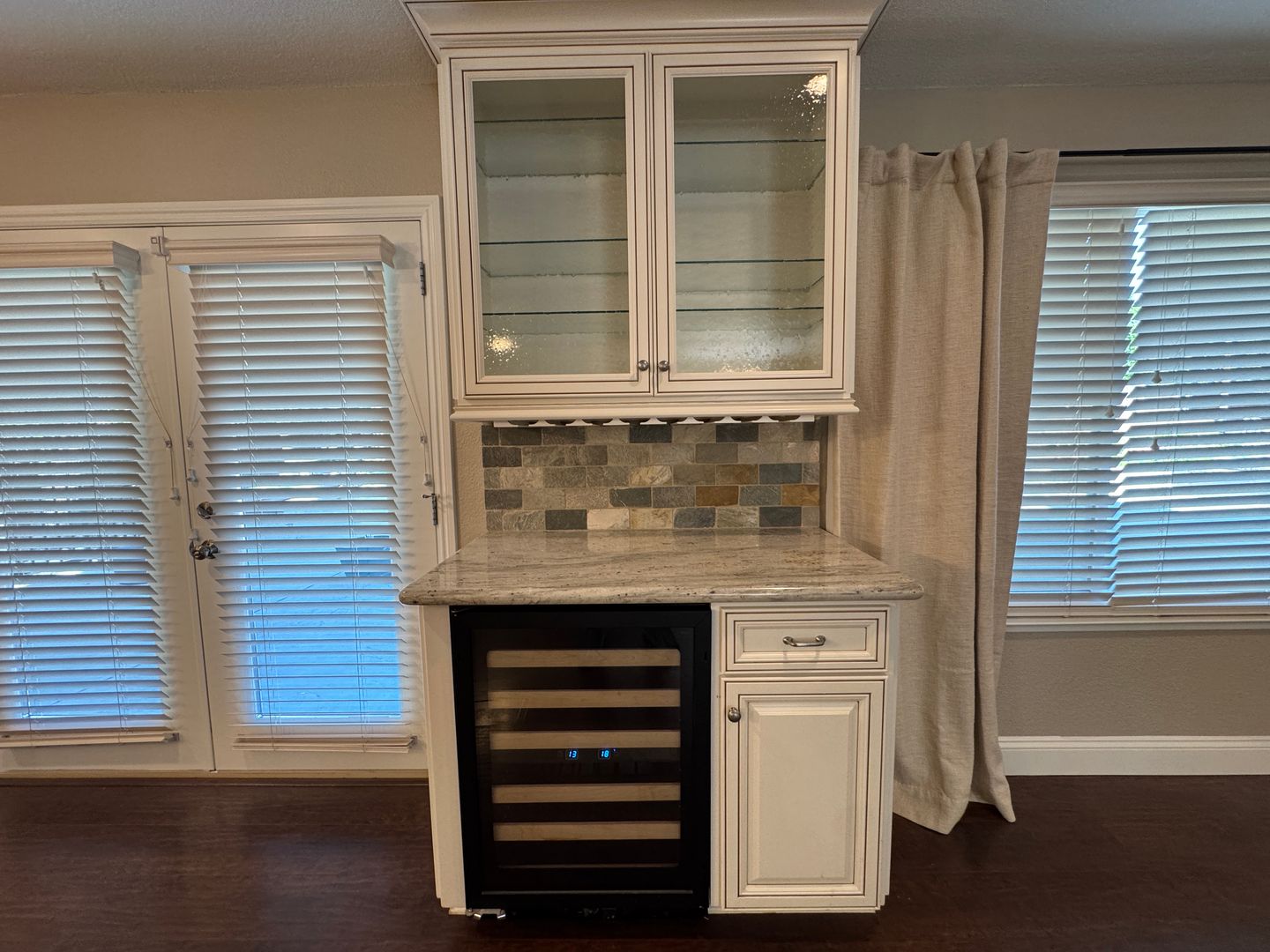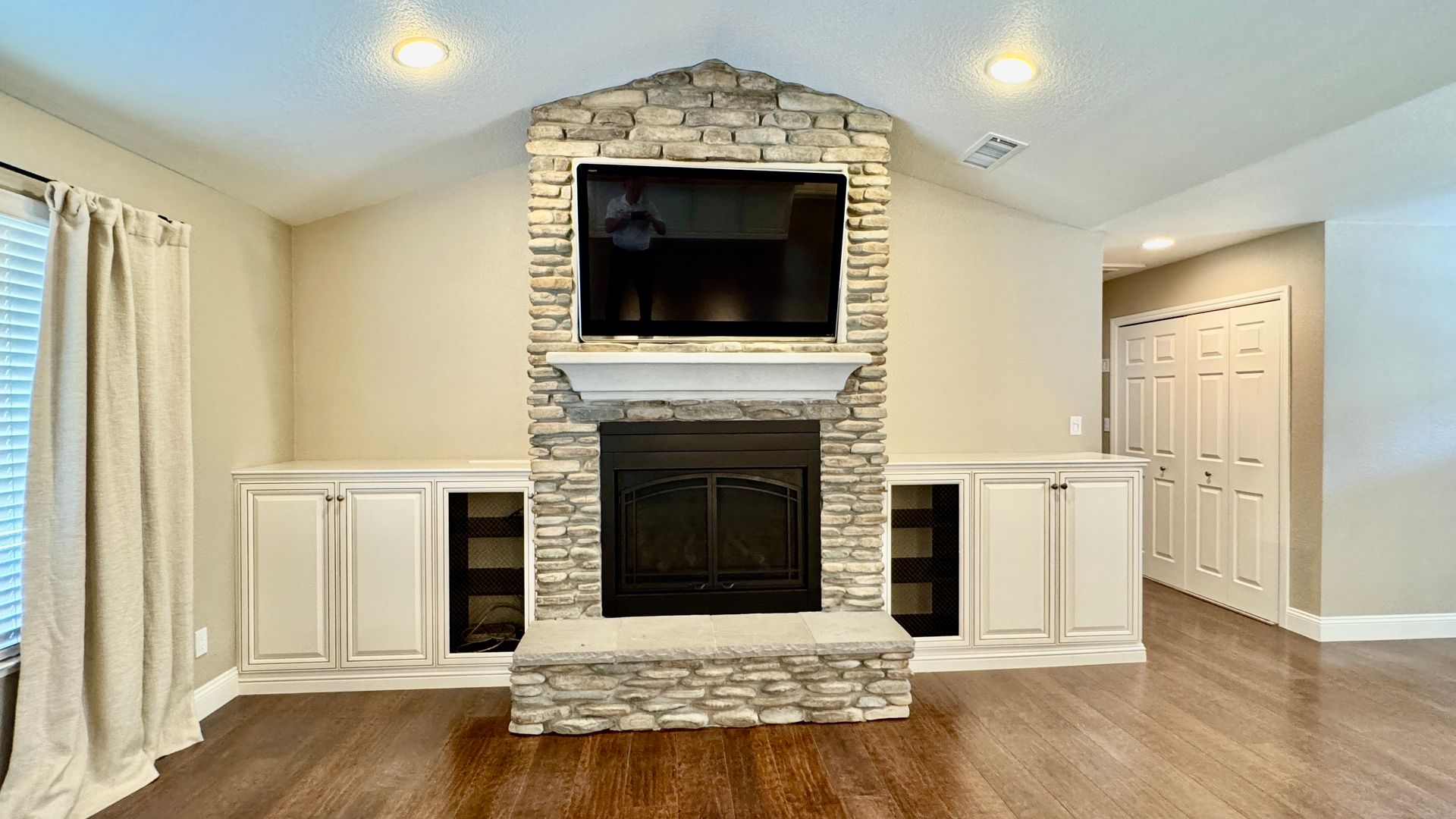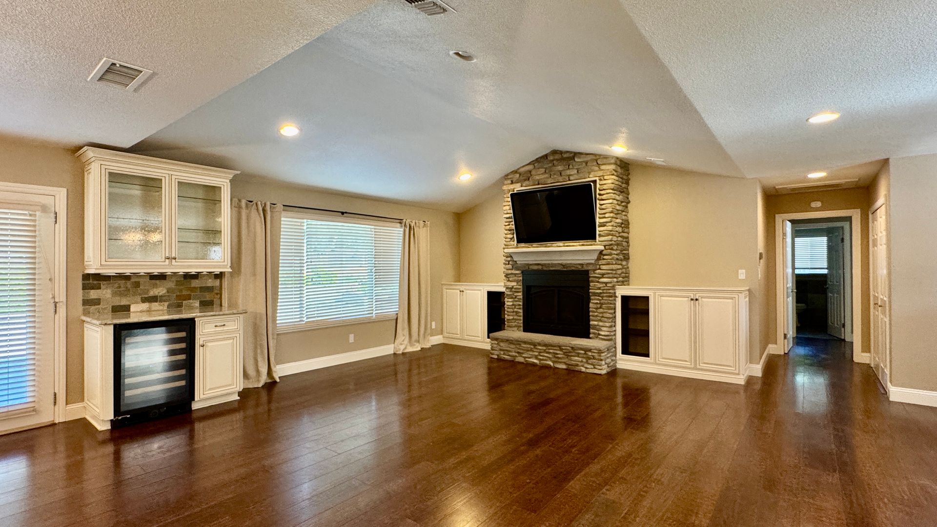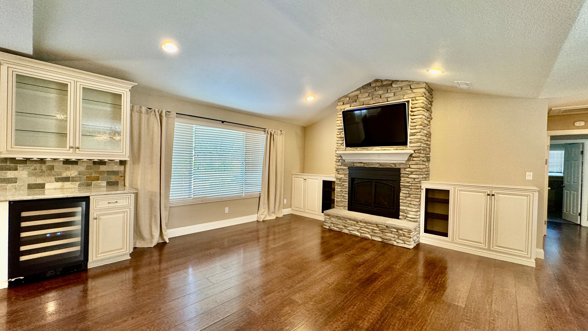 • Living Space: Vaulted ceilings, built‑in entertainment center, gas fireplace, and wine bar
