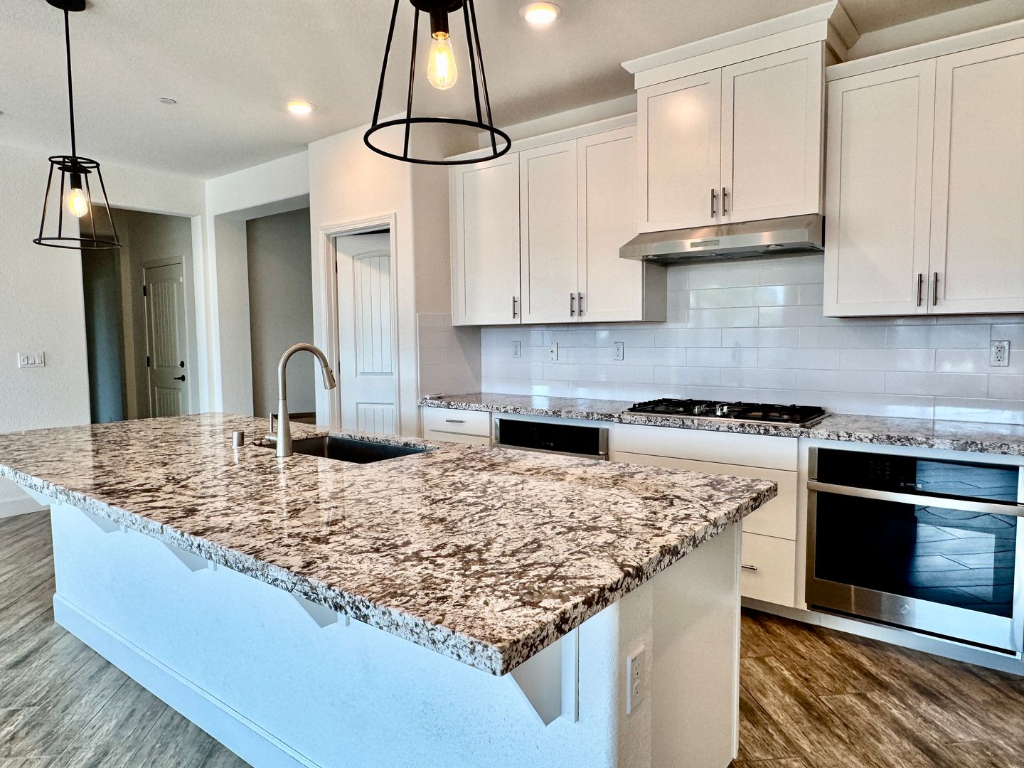 The light-filled main level features an open-concept living and dining area that flows effortlessly into the sty lish kitchen, showcasing a large marble island with sink, pantry closet, and direct access to the covered patio with built-in barbeque island—ideal for entertaining or relaxing outdoors. Tenant provides own refillable gas tank.