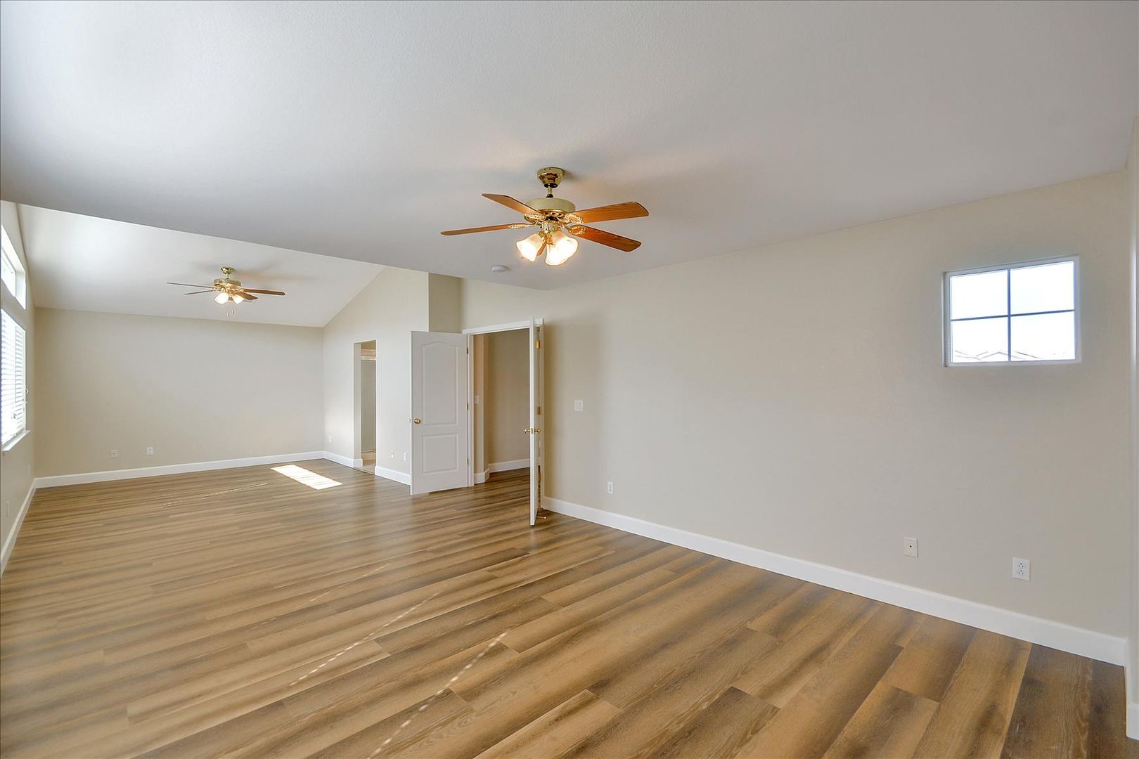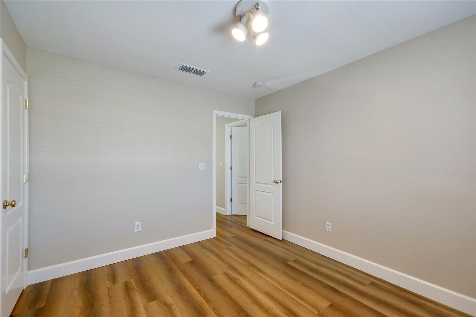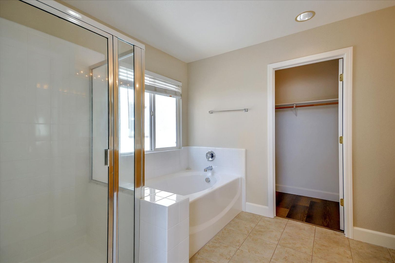 Downstairs bedroom with wood laminate floors and glass sliding mirrors. Full bath downstairs with new tile floors. Huge master suite with double door entry, walk-in closet, separate tub and shower, and dual sinks. Finished backyard with new grass sod and landscaping.