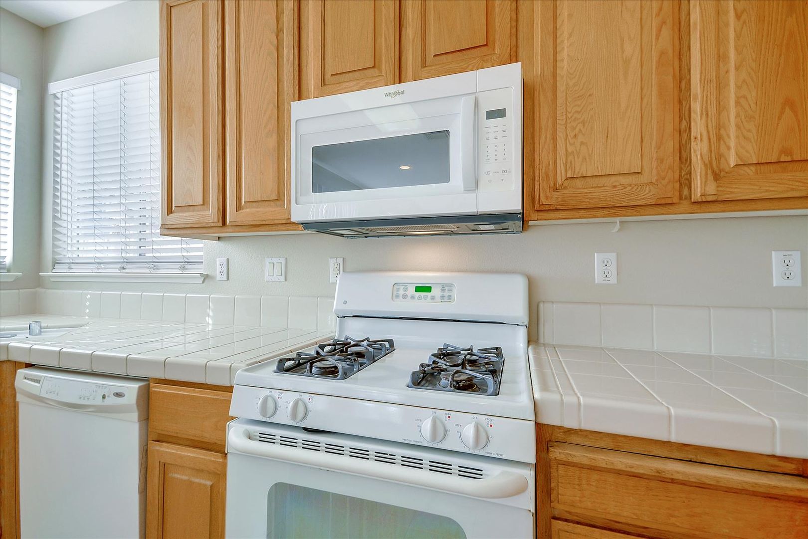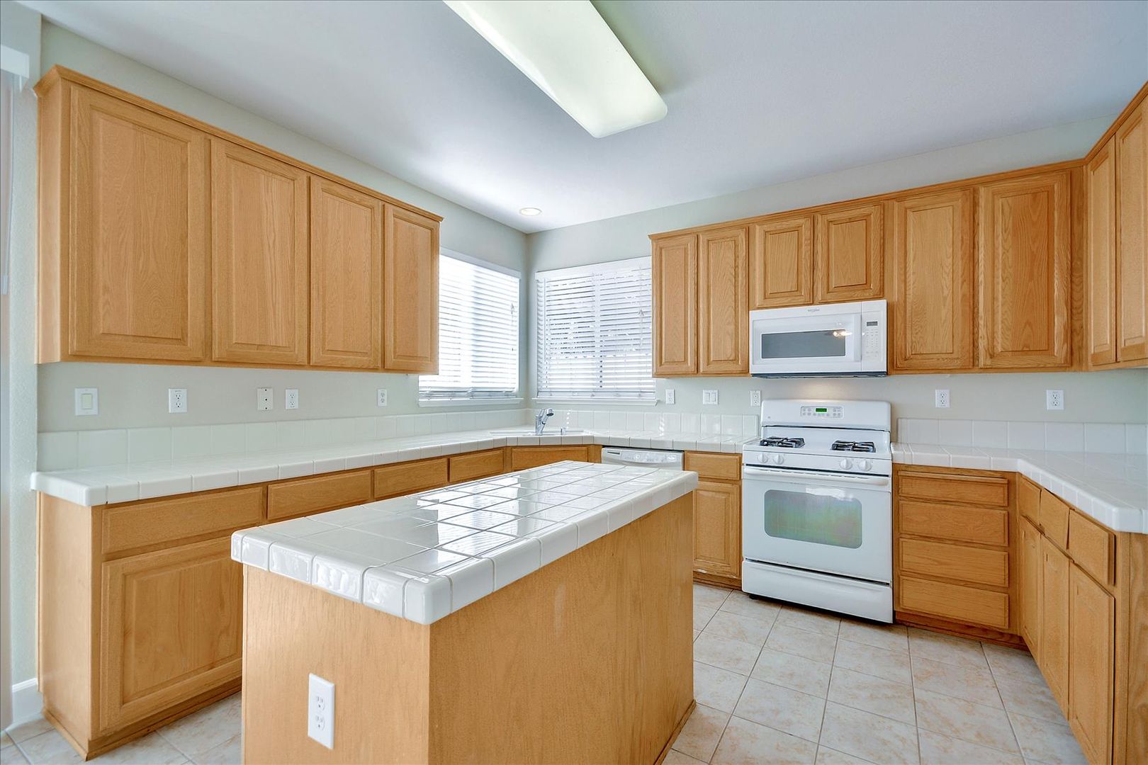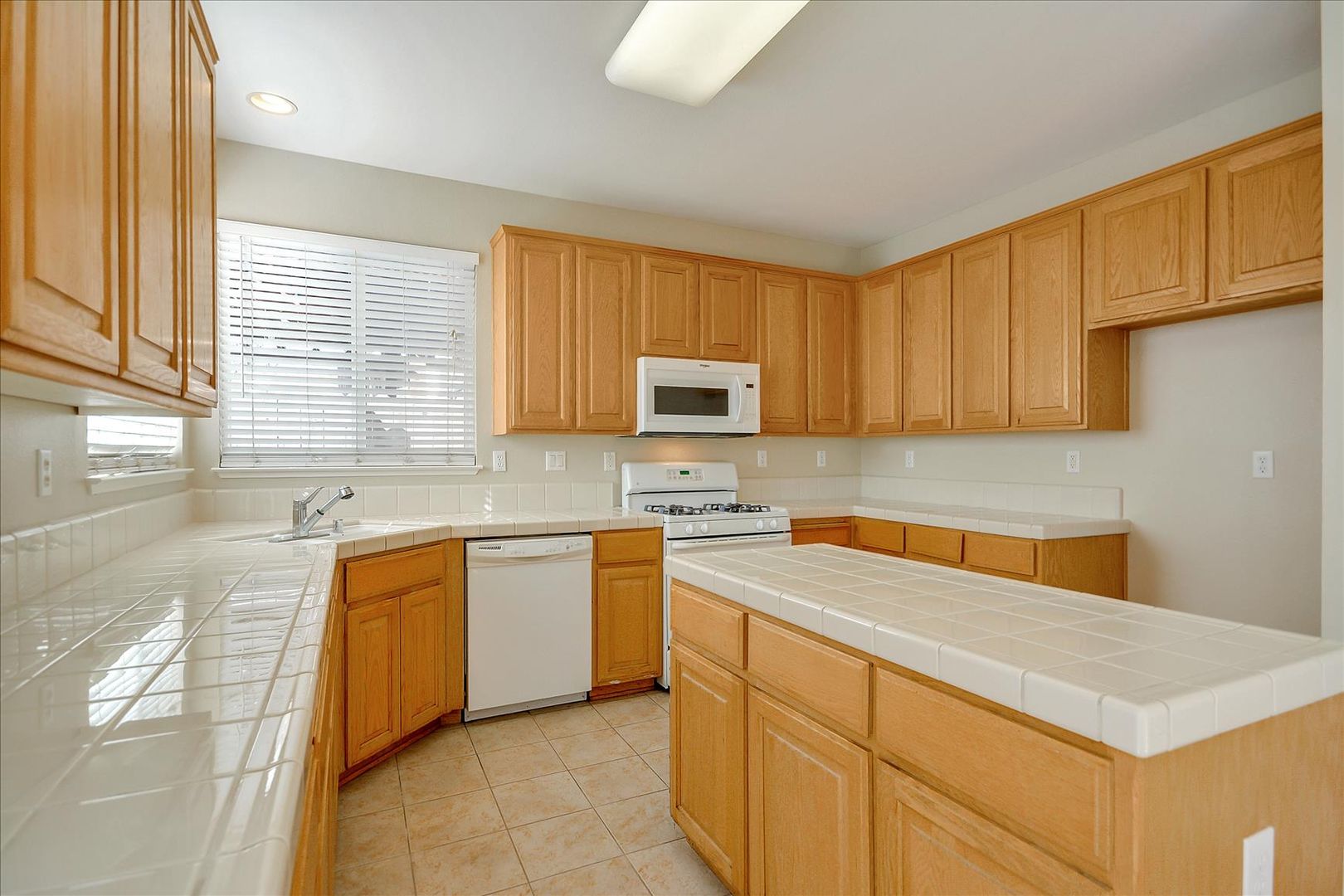 AVAILABLE AFTER 9/1/25. Renovated interior of 4 bedroom, 3 bath home with new woof vinyl plank flooring, freshly painted designer color walls,, and tile at kitchen and baths. Gas fireplace at family room. Kitchen has golden oak cabinets, white tile counters, island counter, pantry closet, and white appliances.
